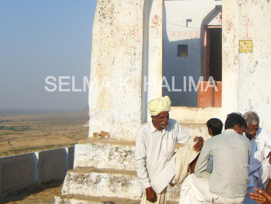 Men by the temple